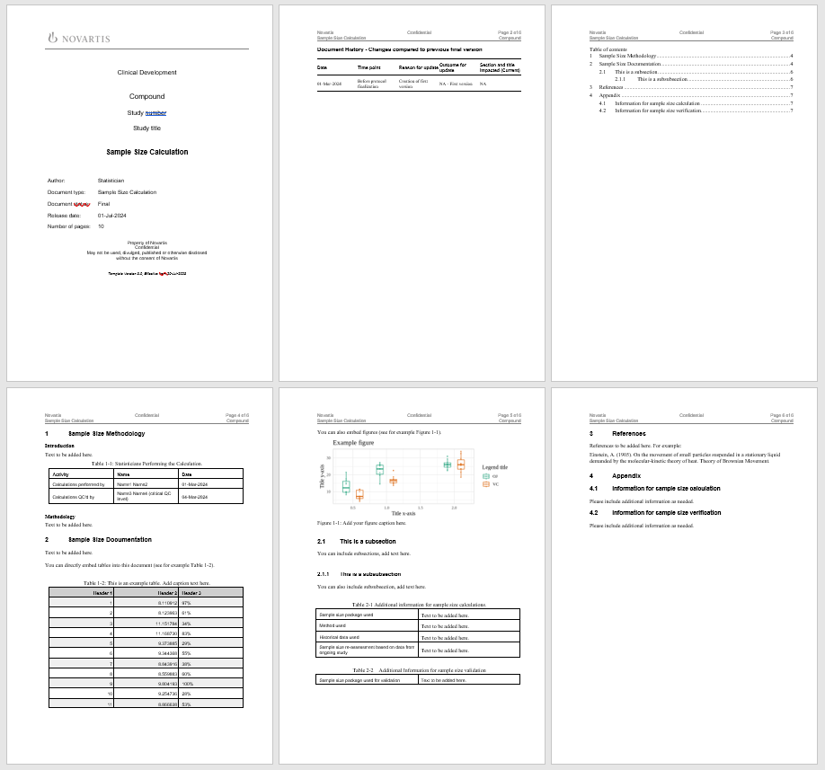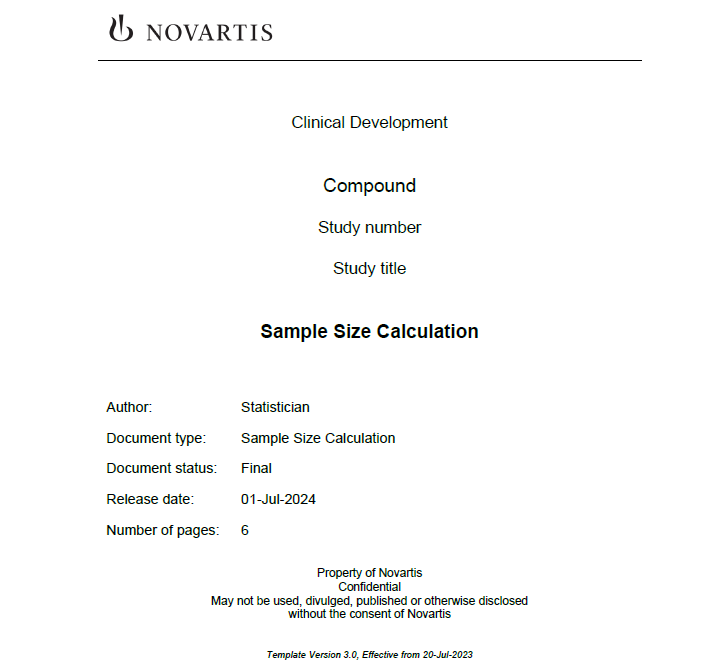 Our trial statisticans estimate and document the sample size for studies using a company template in docx format. It is mandatory that the report complies with the company template.